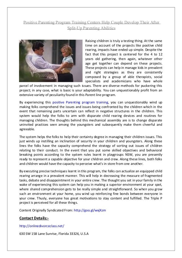The positive parenting program (ppp) helps parents in san diego county find positive solutions to common childhood behavior issues using strategies proven the positive parenting program offers a variety of ways to learn new parenting techniques.